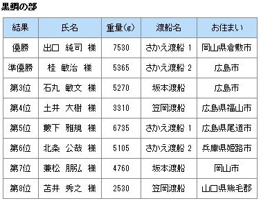 審査対象魚は黒鯛の部5匹の総重量、4船の横取り順位方式にて競われました。