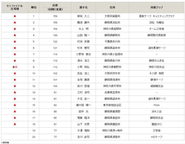 結果的には上位3選手が5gの大接戦。優勝・準優勝はなんと1g差。 厳しい状況の中、都筑久二選手が僅差ながら見事に優勝されました。 他16名の選手とともにセミファイナル進出権を獲得されました。