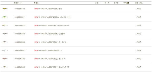 リーネ55SP ( 55mm 3.5g 1.2mDive )