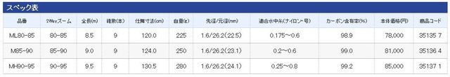 前モデルからコンセプトを継承するライトスペックの中心的モデルです。80-85をMLへ移し、Mクラスはあえて85-90の1アイテムに絞りました。中~大規模河川の本流域で主力となる1本です。