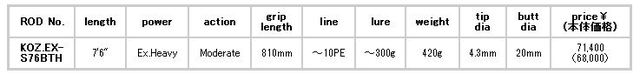 ● KOZ.EX-S76BTH Blue fin Tuna Heavy スピニングモデル グリップ着脱式1ピース