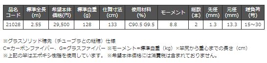 穂先部はグラスソリッドを採用。柔軟な穂先が捕食時に違和感を与えにくくして微妙なアタリを捉え喰わせます。