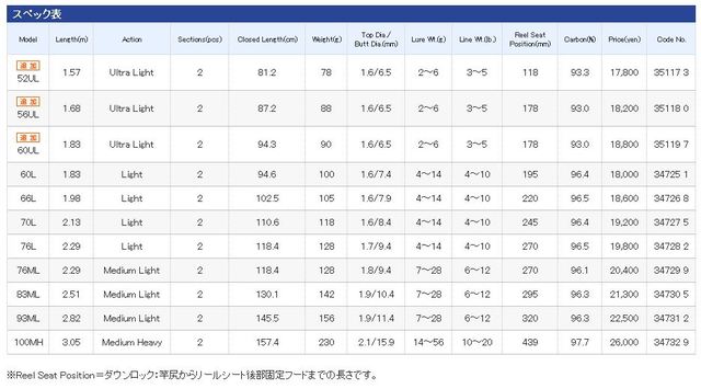 またULモデルには中空構造で感度と軽さを両立したオリジナルリールシートを採用し、更なる軽量化と高感度化を実現しています。
