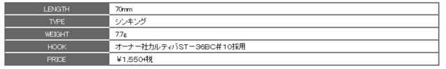 本体ボディー強度を大幅にアップさせたリップレスシンキングミノーです。