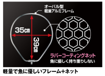 網はポリエステルの網にラバーをコーティングした軽量で魚に優しい仕様です。