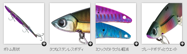 ヘビーウエイトバイブレーション特有のバレやすさを3フックにすることで大幅に軽減し、確実にヒットからキャッチへと導きます。