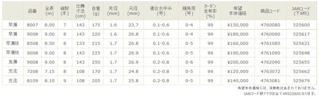 また、短仕舞タイプで小河川などをコンパクトに攻めるショートモデル、支流もラインアップ。