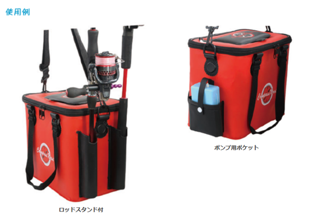 ・コンパクトサイズでアジ・メバルetcを活かしておくのに便利なポンプ用ポケット付。