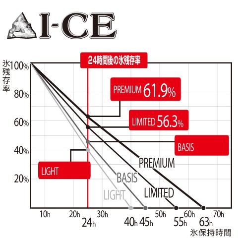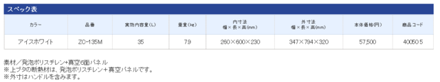 最大60㎝の魚を曲げずにまっすぐ収納できる6面真空パネル採用によりI-CE値65hという非常に高い保冷力を誇ります。