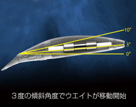 ルアー着水後、リトリーブを開始した瞬間、ウエイトが瞬時に前方向へ移動。