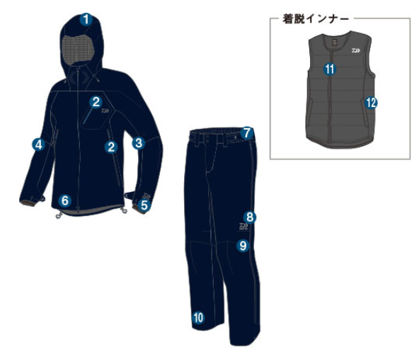 | フルキャスト立体パターンにより、肘・肩の自由度が飛躍的に高まり、キャストの正確性・飛距離に効果が得られる。 その思想を活かしたパンツもストレスの無い自由な動きを実現し、ラン&ガンを繰り返すキャスティングゲームに最適である。 ジャケット内部の着脱式インナーベストには軽量で濡れに強いプリマロフト®中綿採用。(ウェイト:1580g) |