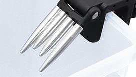 チモト部分を金属スリットに通し、そのまま上に引き上げるだけで簡単にワカサギが外せます。