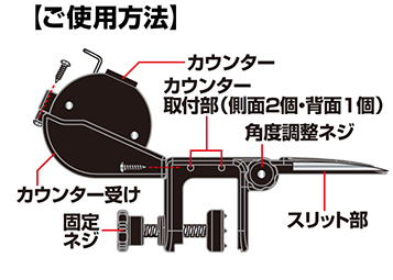 釣果をカウント出来る便利なカウンターは、3方向に取付け可能です。