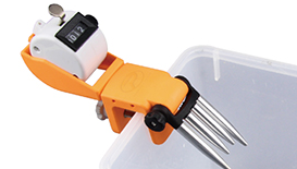 手を汚さずにワンタッチでワカサギを針から外せる針外し。