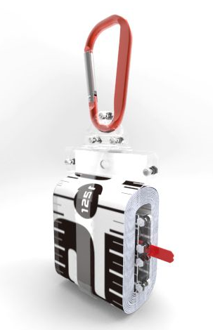 メジャーはシリコンバンドで、コンパクトに収納でき、バッグやベルトループにも装着できるカラビナ付き。