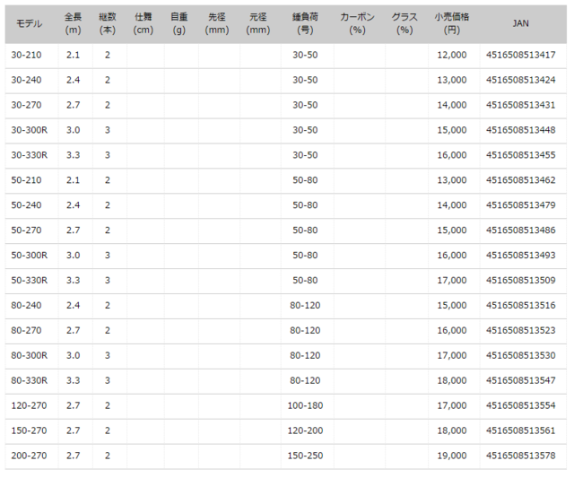 プロファイター 潮 LC 50-270 アクションカーブ 錘50号