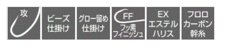 装飾に関しては、「攻めキス」「掛けキス」共、ハリス部分にゴールド&パールホワイトビーズを交互に施した仕様と、グロー留&ケイムラ留を交互に施した2アイテムを設定。