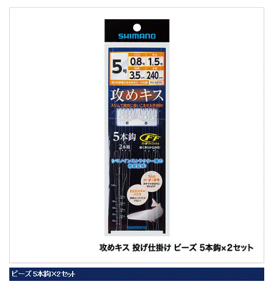 攻めキス 投げ仕掛け ビーズ 5本鈎×2セット:RG-NS3N