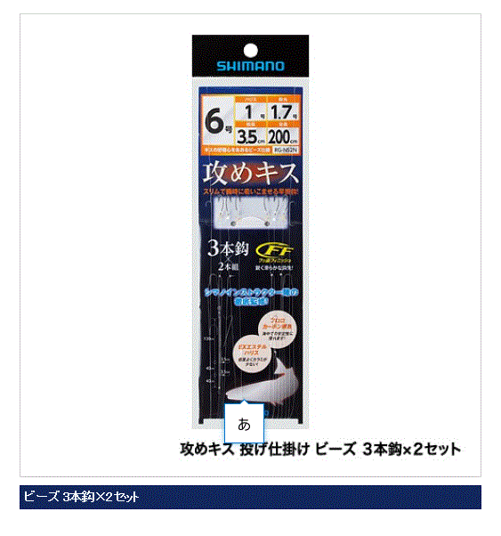 攻めキス 投げ仕掛け ビーズ 3本鈎×2セット:RG-NS2N