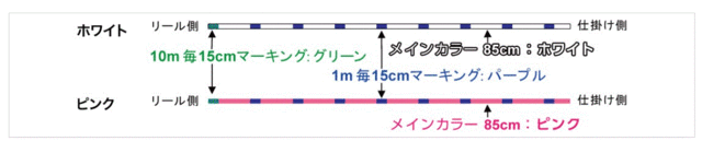 バックが水面時に浮き立ち、水面が 黒くなる穴釣りにおいて特に視認性が 際立つホワイトラインの登場です。