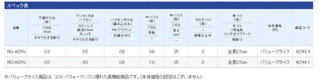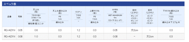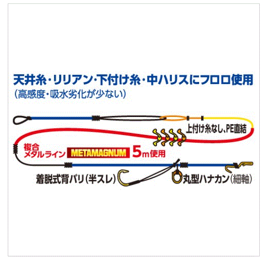 ●天上糸、付け糸、中ハリスに適度な伸びで感度の良いフロロカーボンを使用