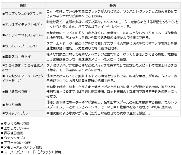 大型青物の強烈な走りや大ダイの突っ込みにも負けないタフさ、スルメイカの多点掛けをも楽々巻き上げてくるパワーを誇る。