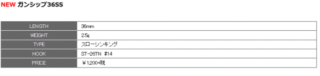 「ガンシップ」はメバルをメインターゲットとしたソルトウォーターライトゲーム用に開発した小型ミノープラグです(潜行深度を抑えた表層系ミノーです)。フローティング及びスローシンキングモデルをラインナップ。
