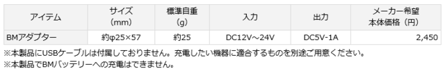 ■本体上部にUSBポートを搭載。BMバッテリーにセットすれば汎用USB電源として使用可能。