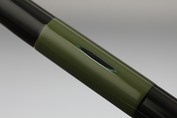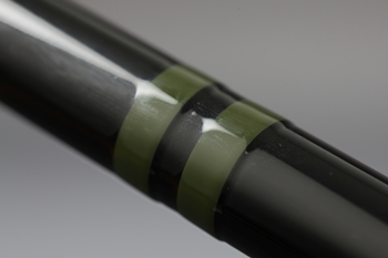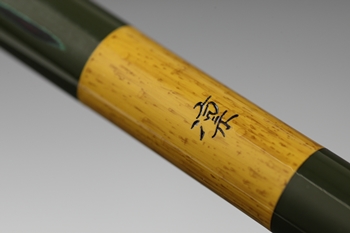 漆黒の本体色に緑の段塗りを施し、そこに見える研ぎ出しが味わい深い趣を生んでいる。