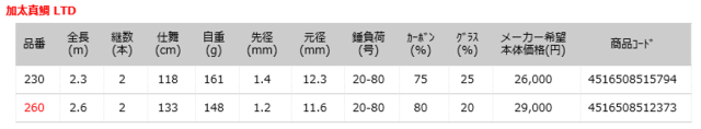 加太真鯛 LTD 260 アクションカーブ 錘30号