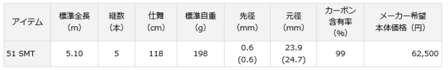 先端の超弾性チタン合金と、それを支えるカーボンチューブラーで構成されたハイブリッド穂先『SMT』(スーパーメタルトップ)は、カーボンチューブラーを上回る振動伝達性、カーボンソリッドを遙かに凌ぐ柔軟性を備えた新世代穂先。