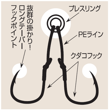 プラグ対応、〈クダコ〉のPEライン付ダブルフックアシスト。