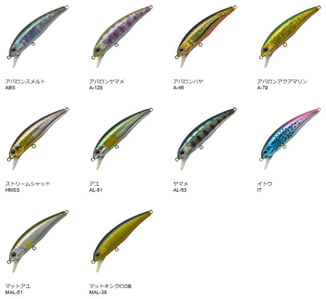 55mm/3.3g/10色/Floating/Hook Size #8(Single)/本体価格 ¥1,300