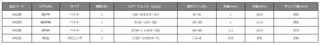 ライトテキサス、ライトラバージグなど軽量級ルアーにマッチング。ジャークベイト、バイブレーション、シャロー~ミディアムクランクベイト、トップウォータープラグなどの巻きモノ系ルアーにも抜群の使いやすさを発揮。