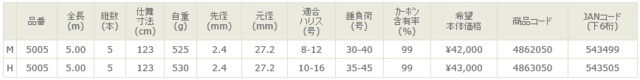 Mタイプは喰いハジキを軽減する喰いこみ重視の穂先を採用し、Hタイプは大型魚にも耐えうる高強度設計を行っており、2種類の調子からお選び頂けます。