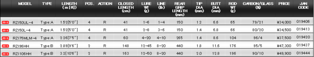 レイズの系譜を受け継ぎ、それぞれのシチュエーションに合わせたブランク設計。
