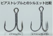ピアストレブルダガーはただダウンサイジングするのでは無く、ややロングシャンク化する事でフッキングパワーを向上させると同時に、ショートバイトを占め取りやすいセッティングへと最適化。