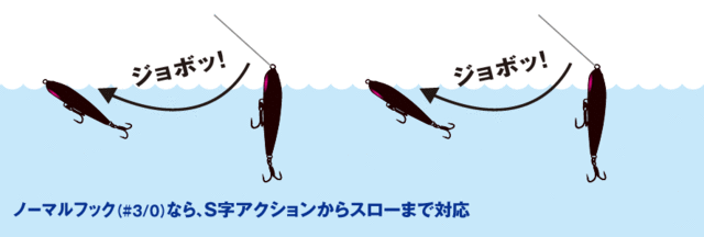 ダイブ後の水中の滞在時間を長くすることでヒラマサやマグロに口を使わせやすく、フッキング性も上がる。