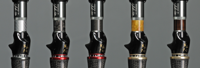 自由度の高いフルアングルキャストを実現させるロープロファイル・ショートトリガーに接合されたITOリールシートスペーサーは、「ウォールナット(ウッド)」・「バーズアイピーコック(ウッド)」・「4-AXISISカーボン」・「BRAIDED WOVENカーボン」・「METALコンポジットカーボン」の5種類。