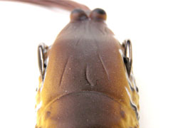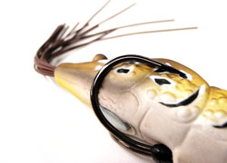 レイダウン、オーバーハング奥へのスキッピング、リザーバーのゴミだまりなどへのアプローチはもちろん、中空ならではの「ポトン!」という自然な着水音を生かしオープンウォーターまでも得意とする“ソフトボディーのスナッグレスポッパー”が「エビガエル」です。