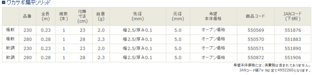 調子は極軟調子と軟調子の2調子のラインナップ。