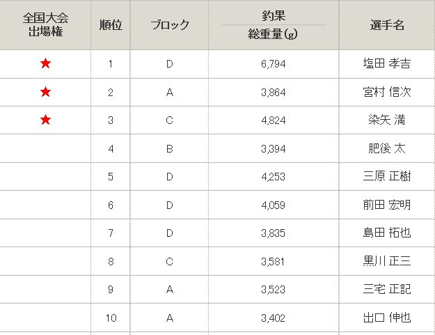5位以下は渡船の便もブロックも考慮しない、重量のみで順位を決定しています。