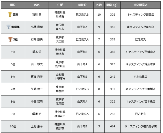そんな中10匹の釣果で粕川選手が優勝されました。