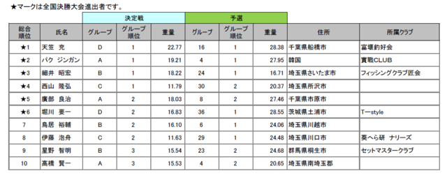 決定戦は、出だしこそ遅かったが上位の選手は、しっかりタナを作りはっきりしたアタリを出させ確実に枚数を重ね、最後には、高釣果で全国決勝大会へ駒を進めた。