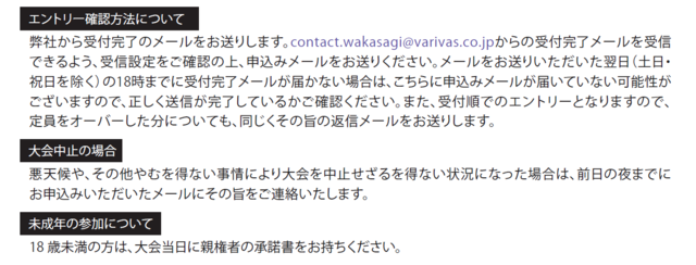 大会名・氏名・ふりがな・郵便番号・住所・携帯番号を下記のアドレスにメールにてお申込みください。