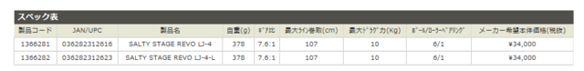 ラインキャパシティ―はスーパーファイヤーラインが1号-1200m~4号-300mのバリエーションで巻くことが可能で、近海のハードジギングから中深海までのジギングが可能です。