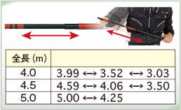 オールラウンドな4.5mは様々な場面に対応しており、守備範囲の広いロッドです。
