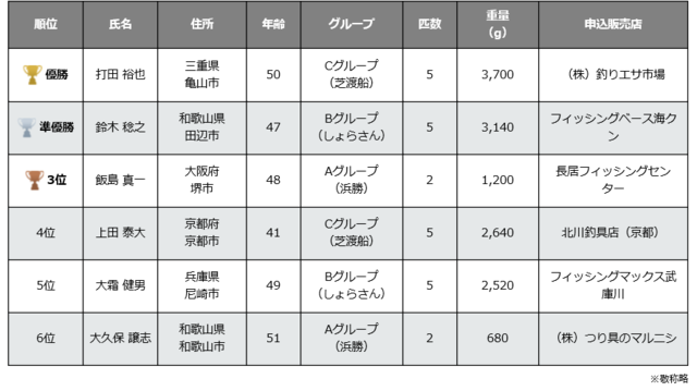 優勝・準優勝の両選手は型を揃え、3,000g超の釣果で全国大会への権利を勝ち取られました。