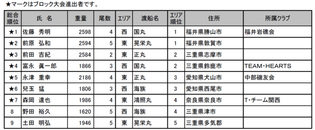 全体的には半数近くの釣果であり、その中でも着実に釣り上げた選手がブロック大会へとコマを進めた。