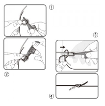 ④両方をゆっくり引き締め、結束した後の余分なラインをカット。(締め込む時は、唾などで湿らせて下さい)